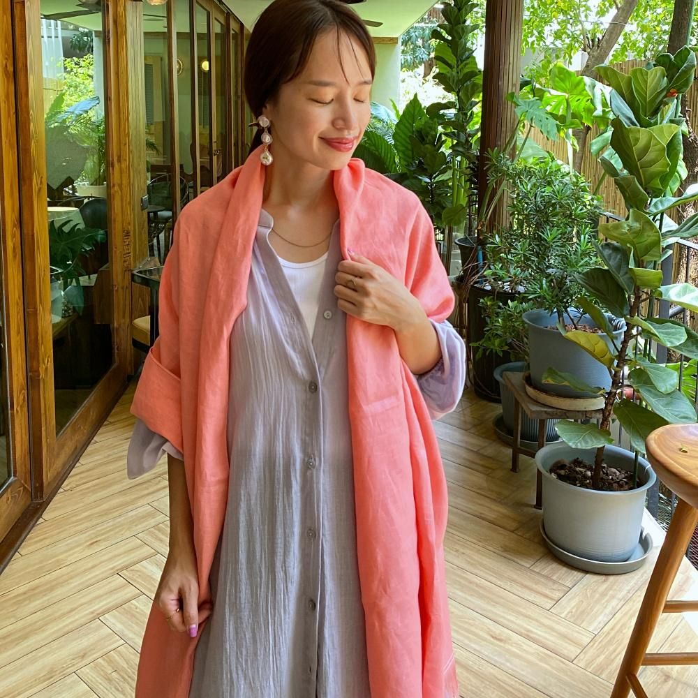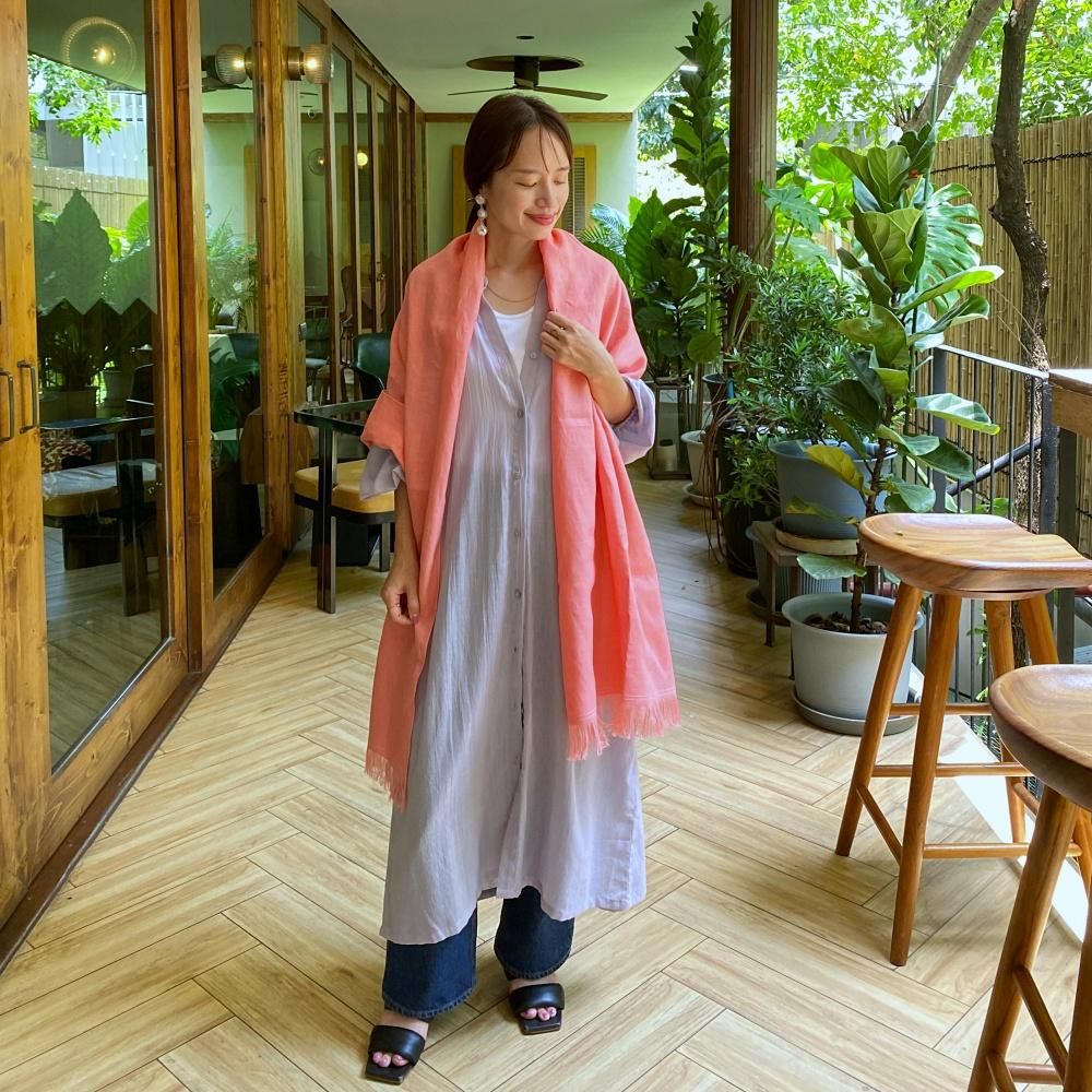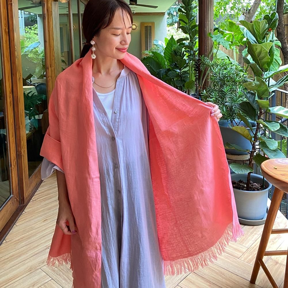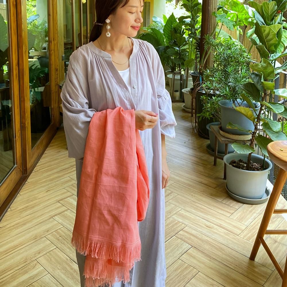 肌触りが良く柔らかい素材で巻き方のアレンジで楽しめるサイズで、デイリーに使いたくなるアイテム。