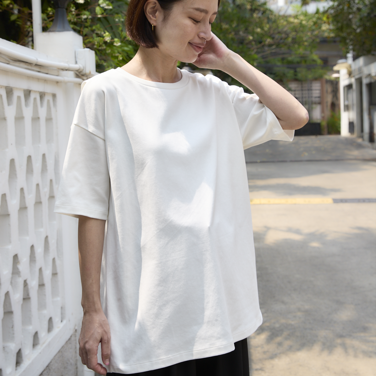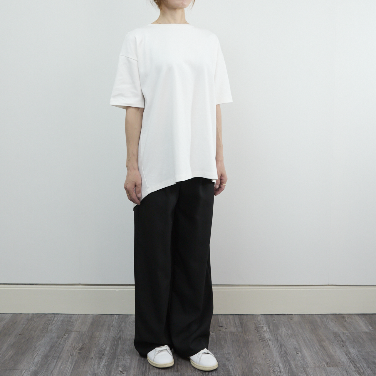 少しゆとりのあるサイズ感は、身体のラインが出にくいシルエットです。