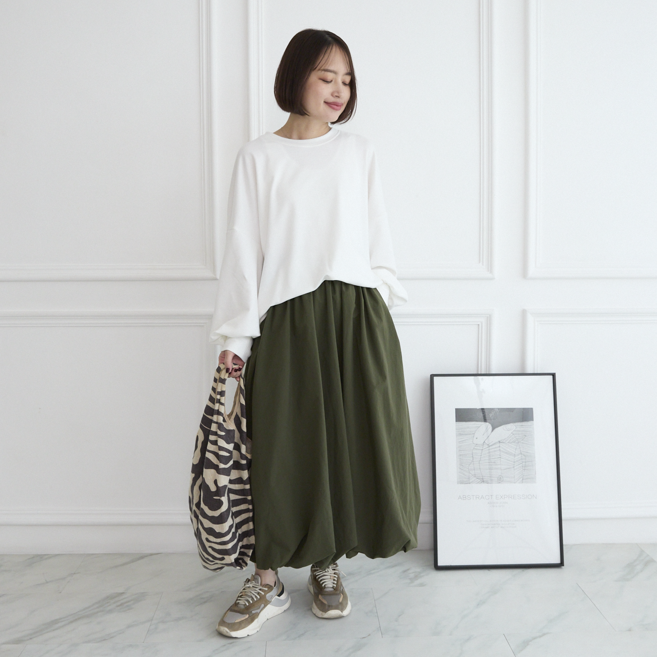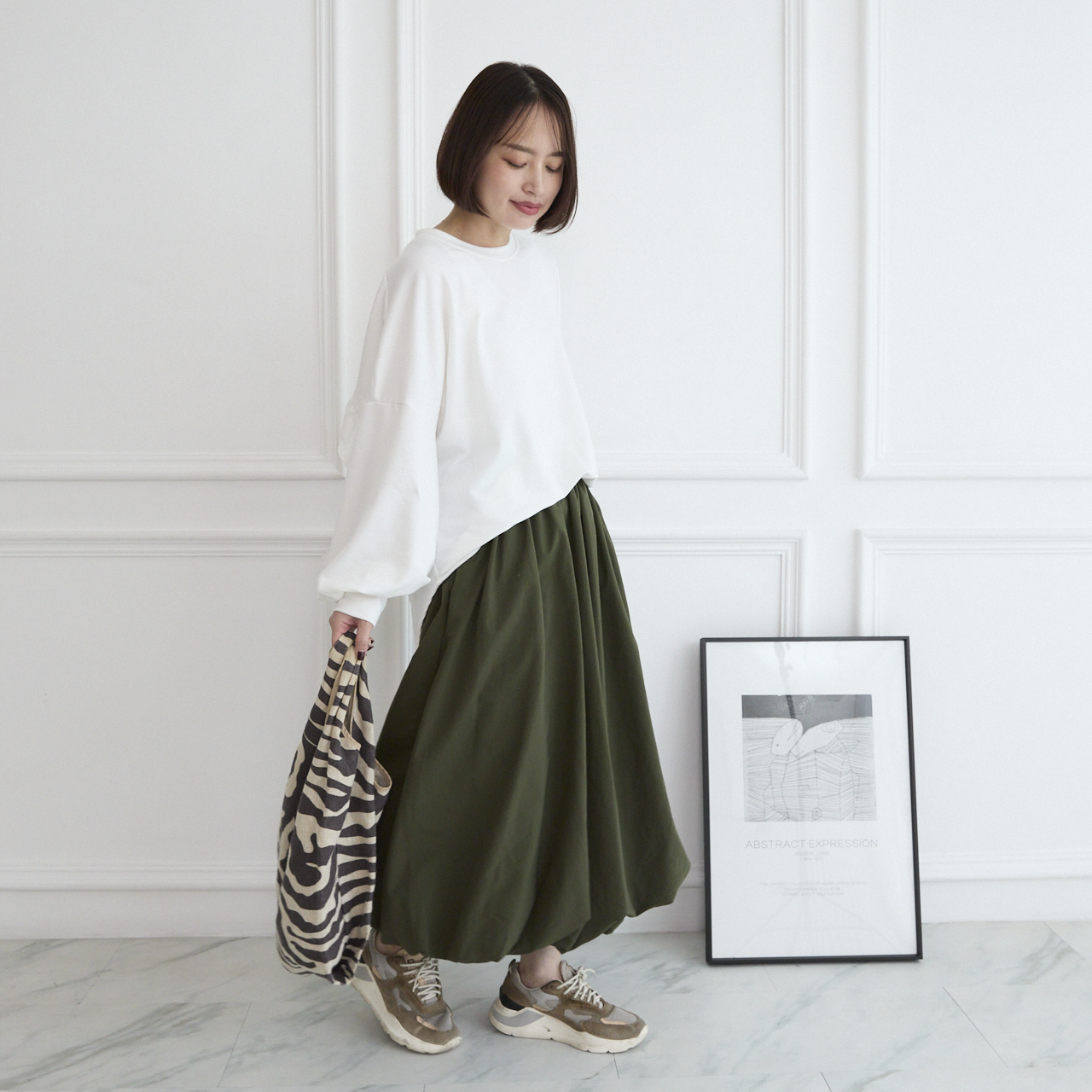 ボリュームたっぷりのふんわり感あるシルエットが人気のバルーンスカート。