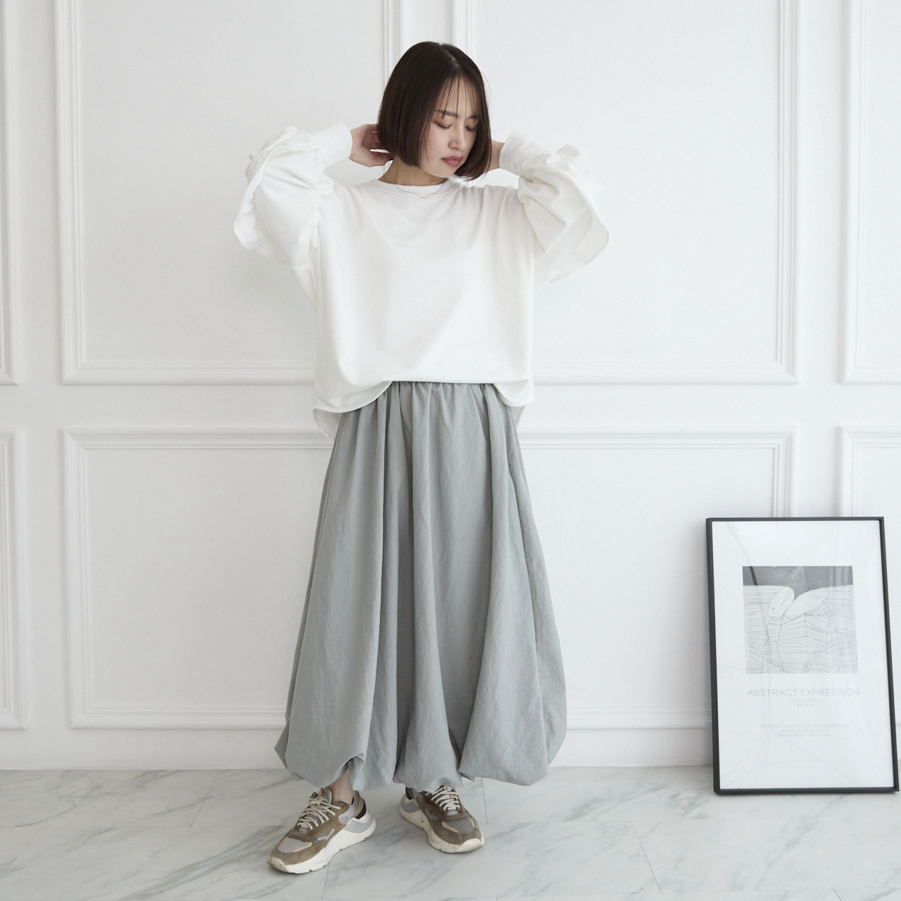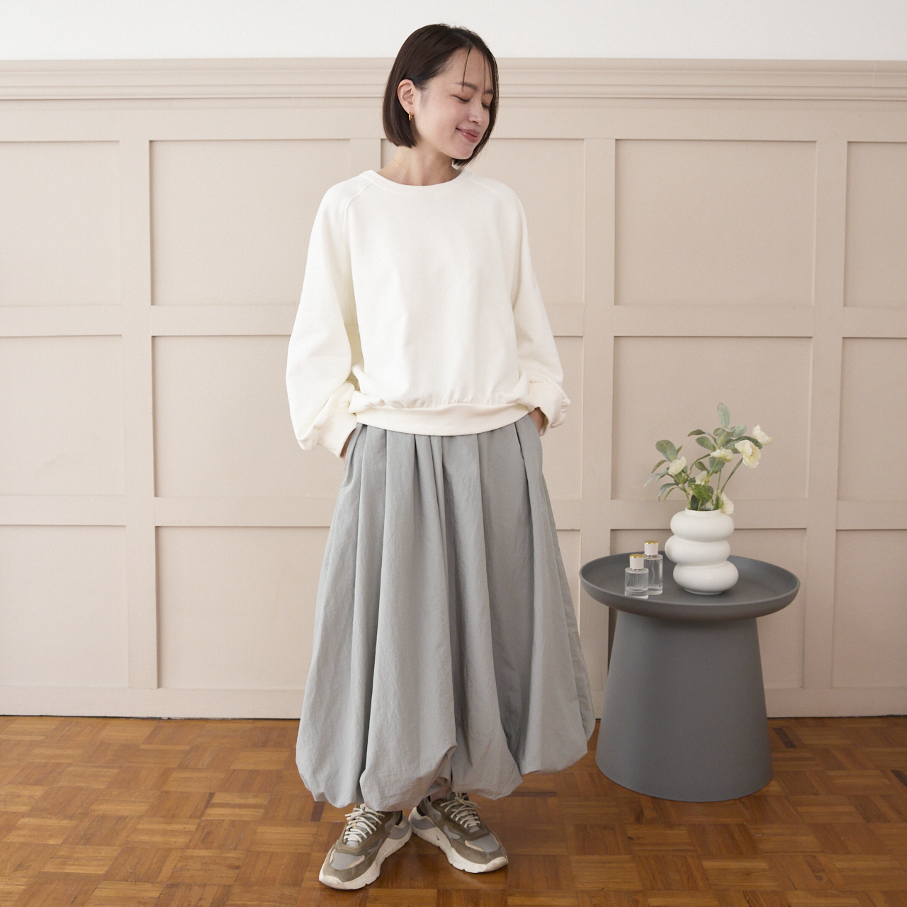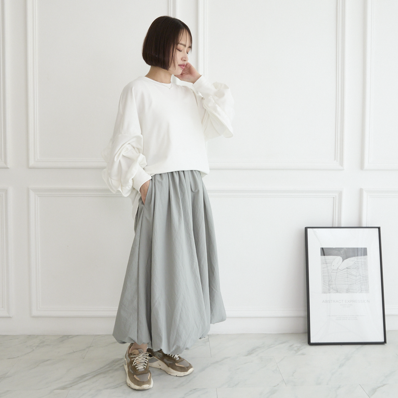 ボリュームたっぷりのふんわり感あるシルエットが人気のバルーンスカート。