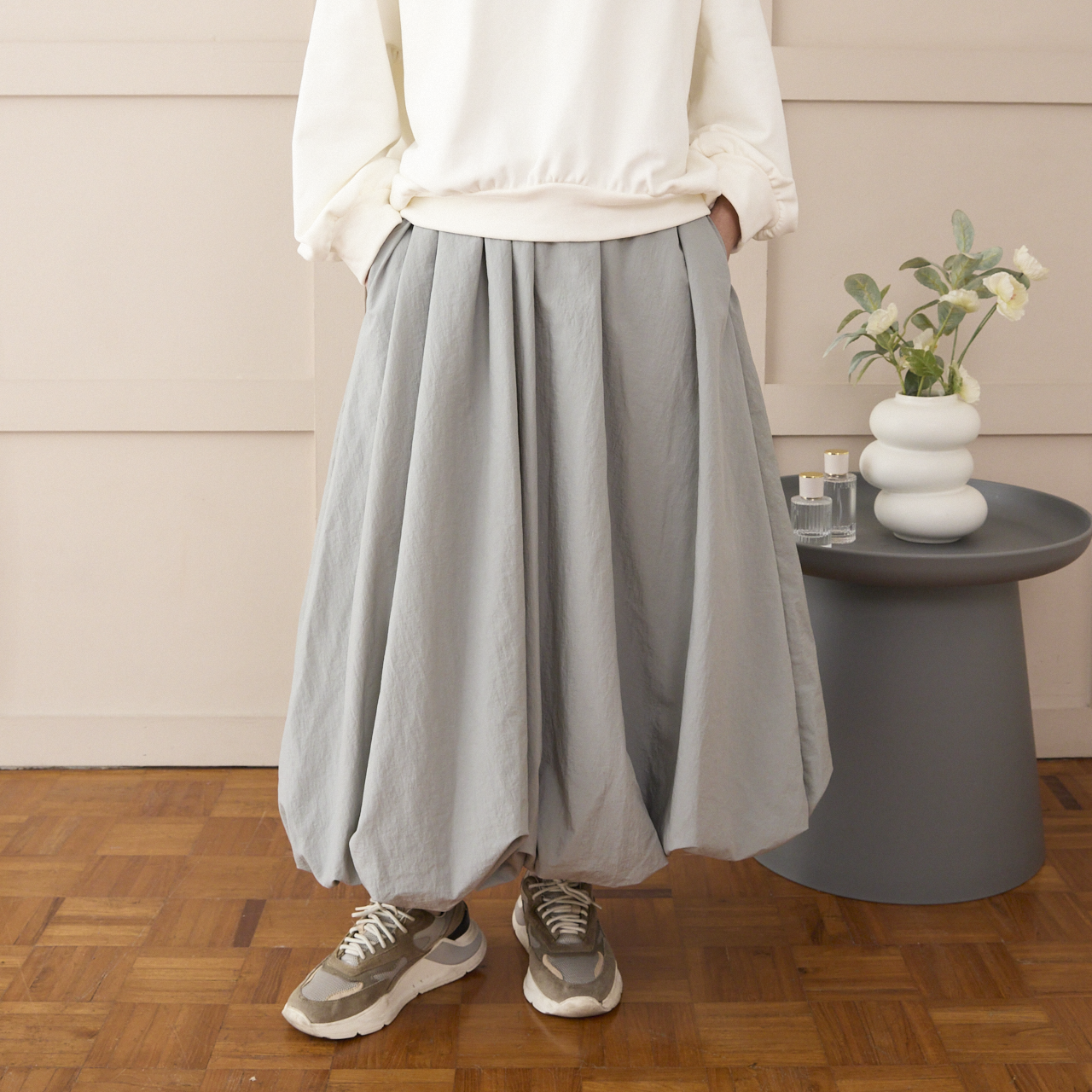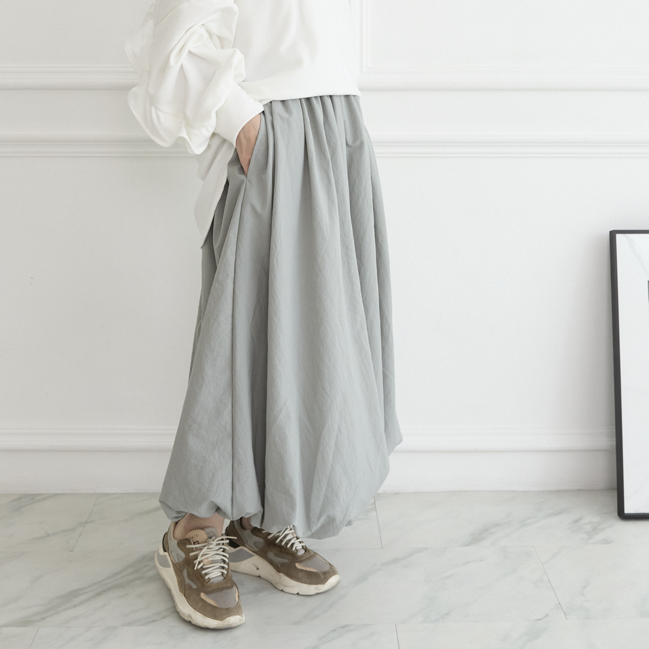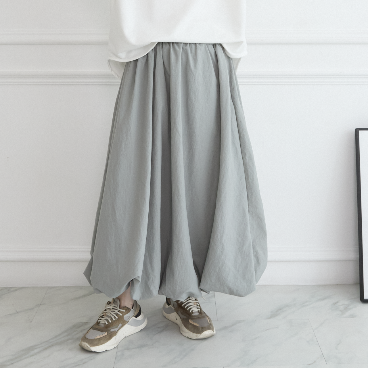 ボリュームたっぷりのふんわり感あるシルエットが人気のバルーンスカート。